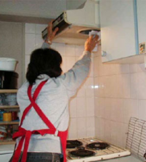 忙しい奥様に代わって、日ごろ手の回らない部分のお掃除、換気扇、水まわり、窓ガラスなど、お任せください。一般のご家庭の定期的なお掃除。